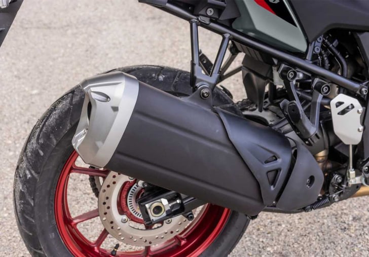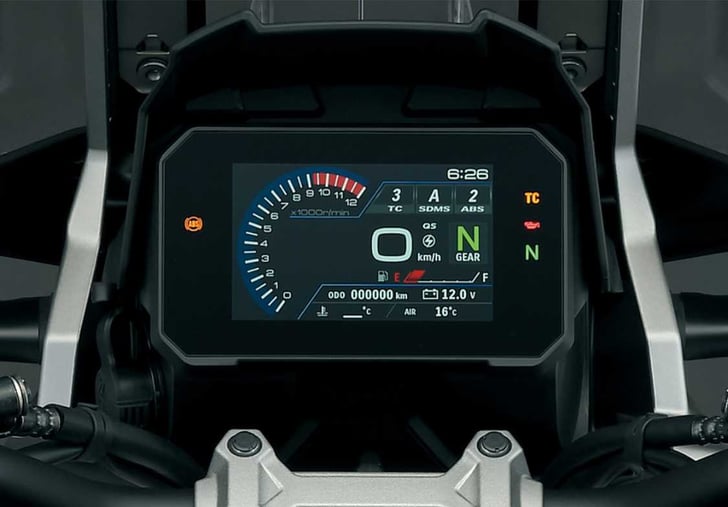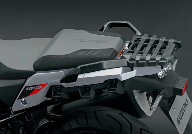 A USB port built into the left side of the dash cluster supplies power for recharging smartphones and there is also a 12V DC outlet under the seat to charging other items too.3 Knuckle covers enhance the adventure styling of the machine while offering added protection from the weather, as well as protection from flying stones. The standard fitment centre stand brings added convenience and practicality for use during maintenance, loading, or parking on loose surfaces. At the rear, luggage mounts for the integrated accessory panniers can be found as well, in addition to the stylised plastic belly pan. The 1050 also includes rider seat adjustment (20mm higher) and screen adjustment of 50mm too as standard.